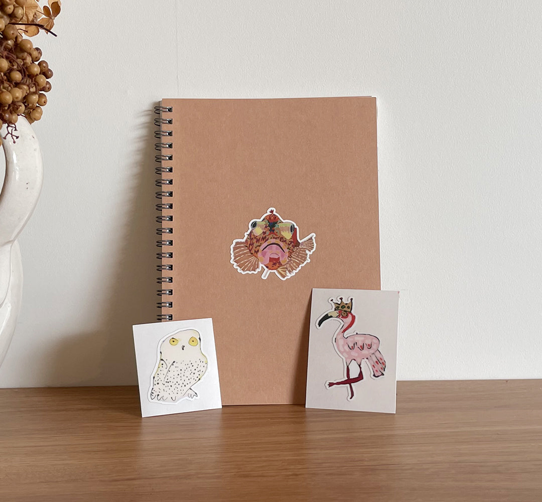 one's artのホームグラウンド広島の、安田女子大学の学生さんとのコラボ商品。スマホや手帳、パソコンなどに貼れるかわいらしいステッカーです。
