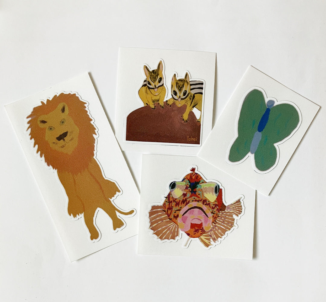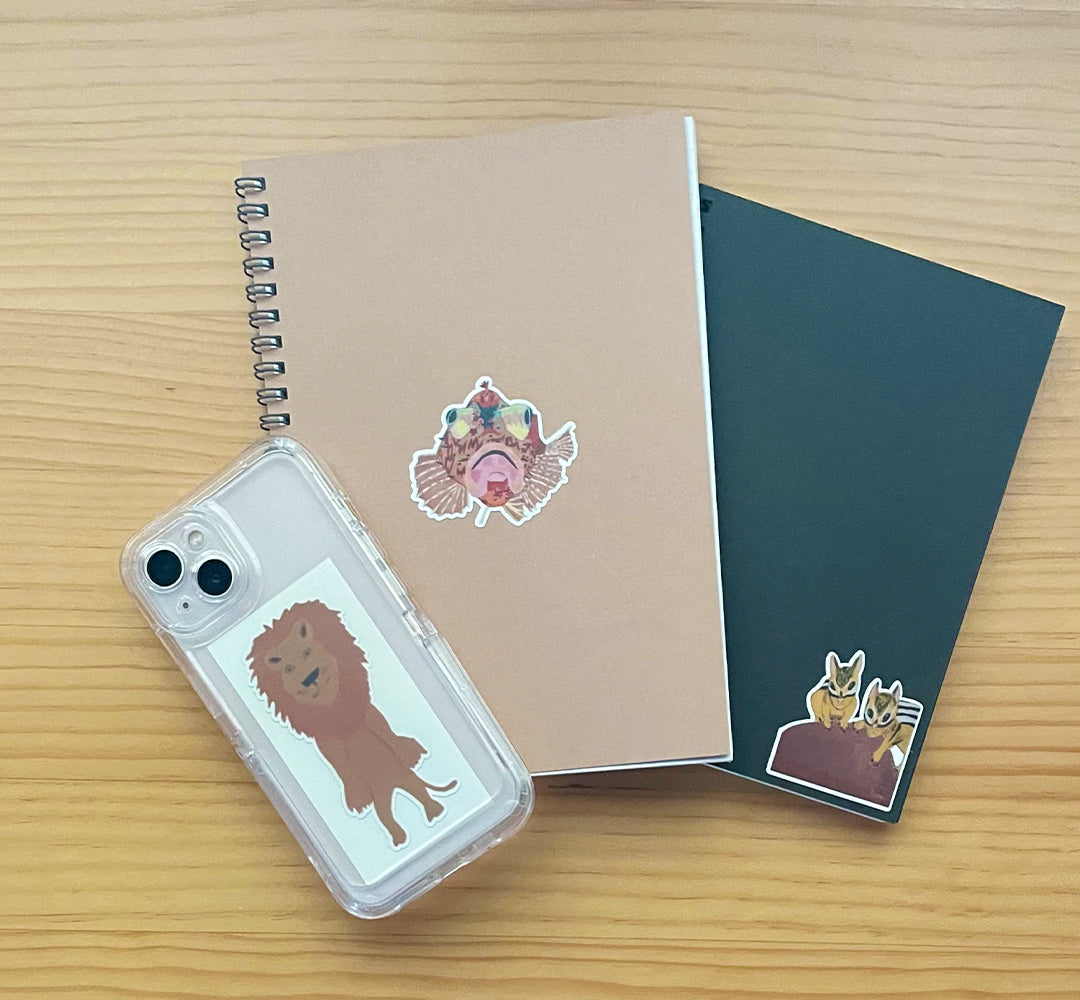 one's artのホームグラウンド広島の、安田女子大学の学生さんとのコラボ商品。スマホや手帳、パソコンなどに貼れるかわいらしいステッカーです。