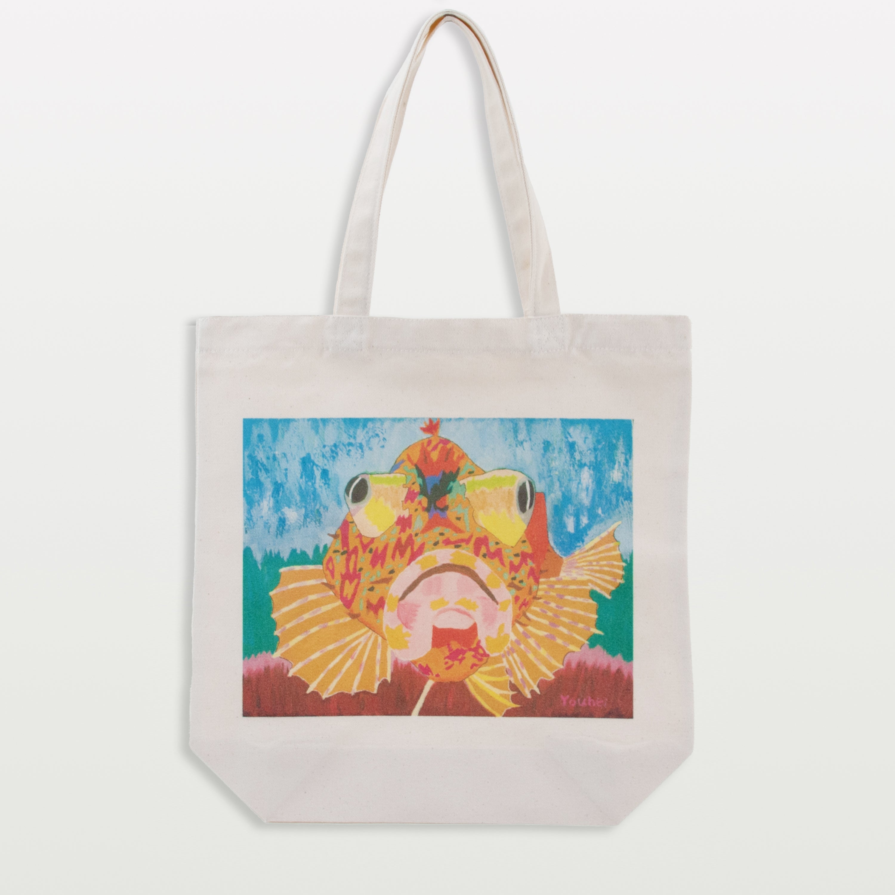 厚手のキャンバス生地で仕立てたトートバッグに作品を印刷しました。ポリエステル入りのしっかりとした生地なので、丈夫で耐久性があります。
