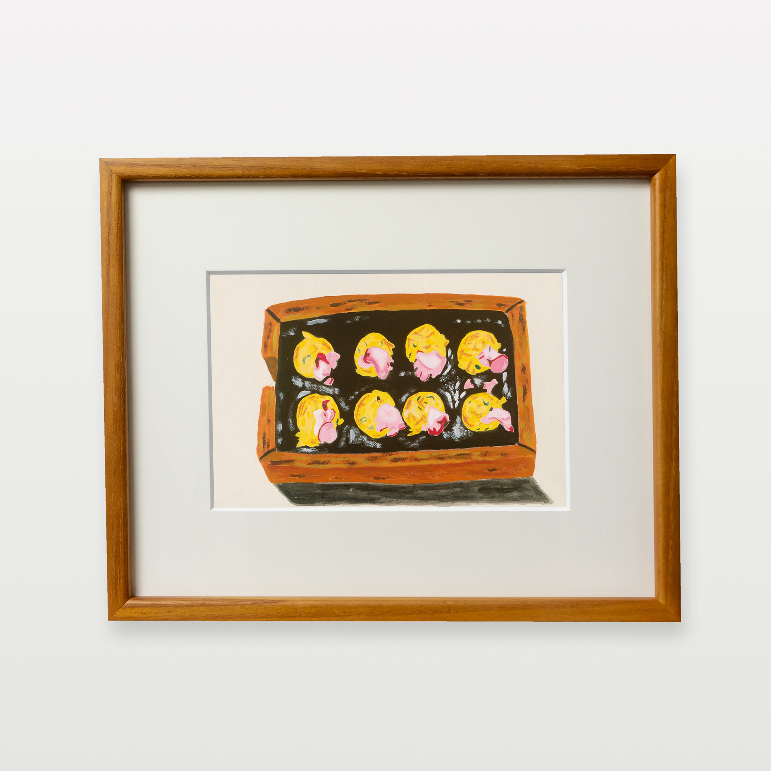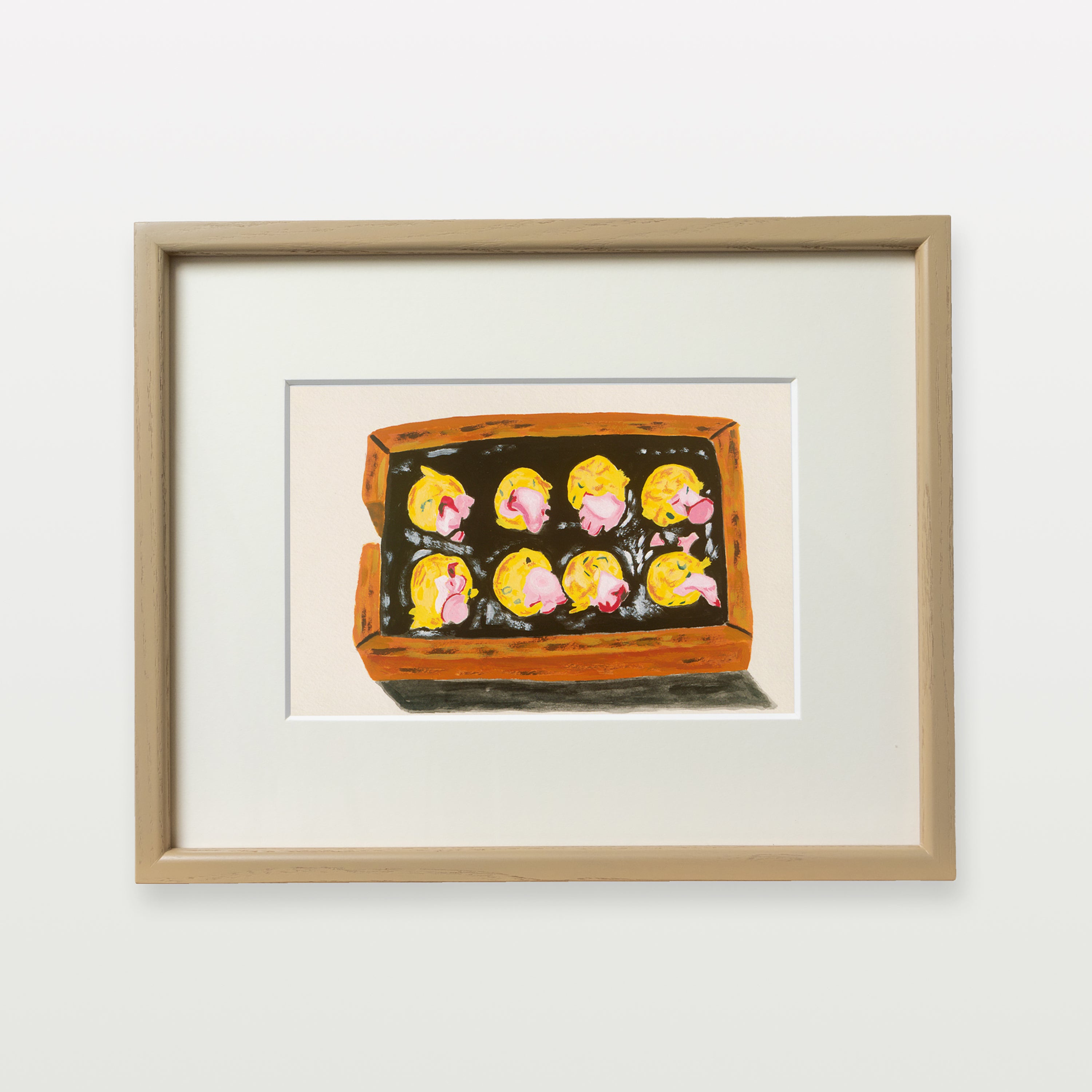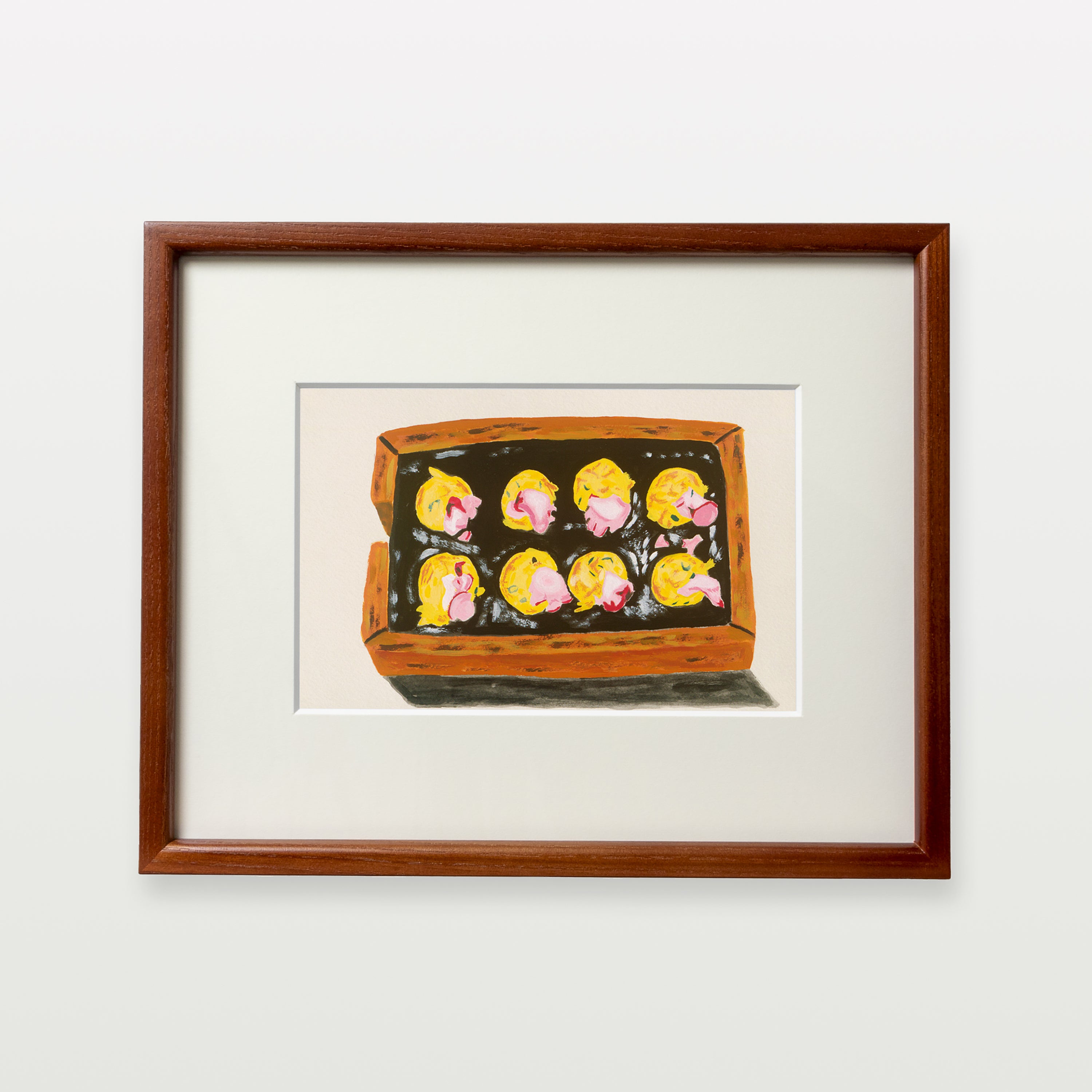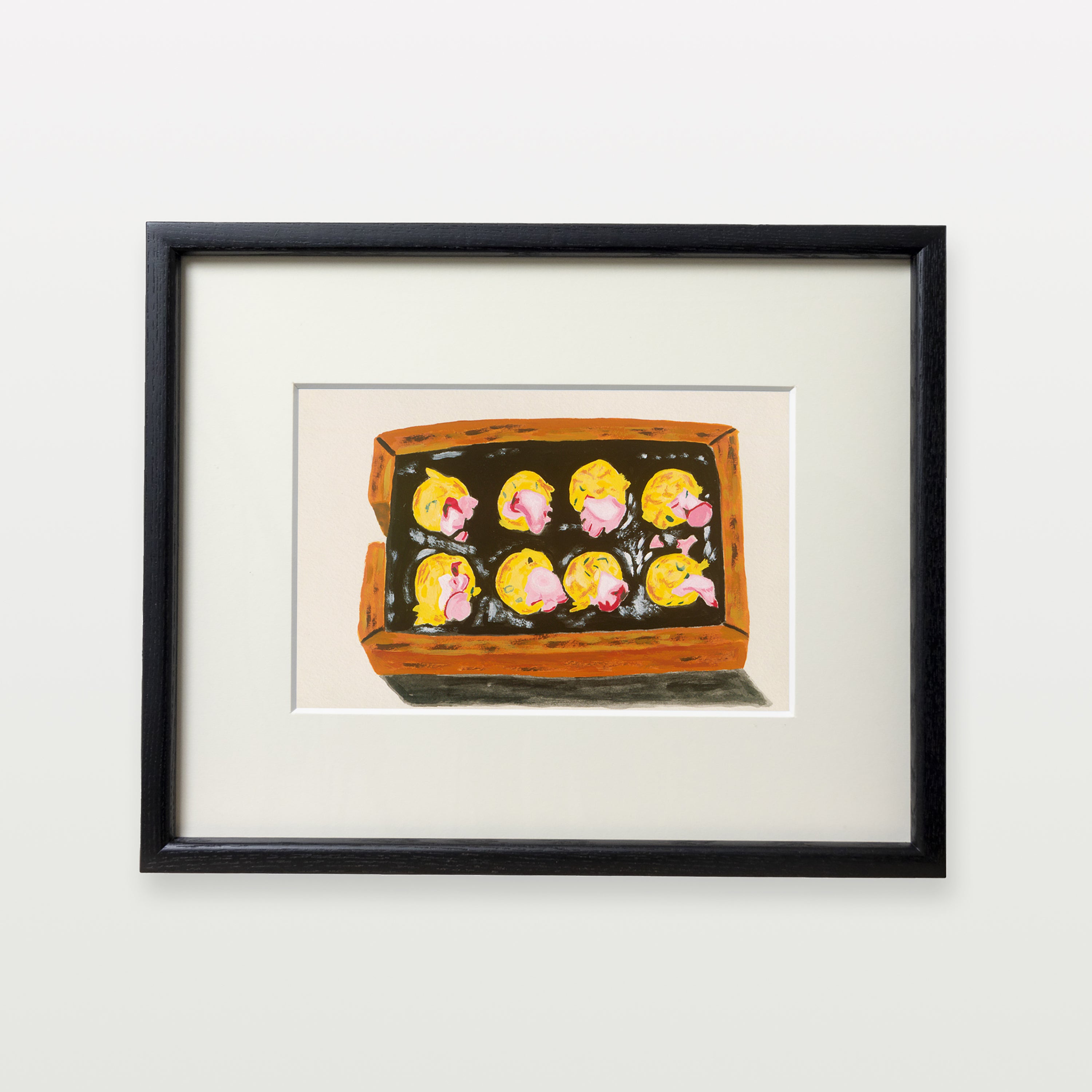 旅行が好きな細木さんは、綿密に立てた旅行計画に基づき旅先の風物や食事を楽しむことを趣味にしている。帰った後は旅行先で撮影した場所や建物、人物、食べ物などをモチーフにして描く。こちらは大阪で食べたたこ焼きを描いたもの。